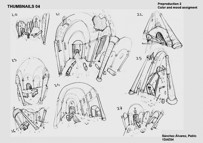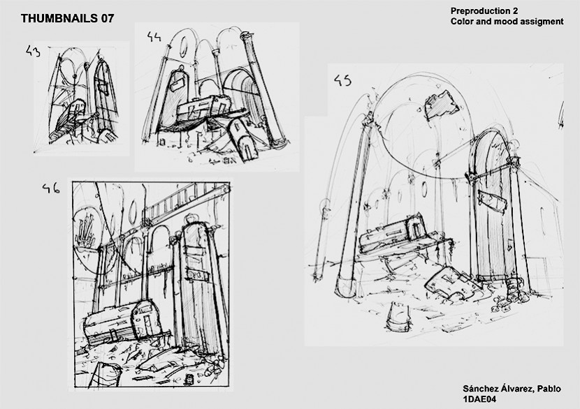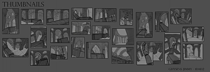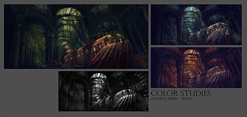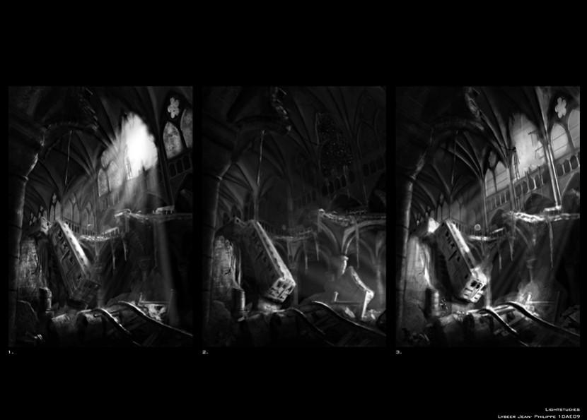 For this assignment we took the interior of a church as the basis for a colour and mood paint. In preparation for this assignment, the students created observational sketches in a few churches in Kortrijk. They implemented a given theme in their best church sketch and created an attractive atmospheric digital painting.