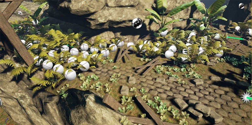 Once the walk-through interaction was complete, he moved on to the fun stuff. With physical actors he was able to easily apply forces (i.a.radial explosion impulse) and play an animation to trample the folliage.