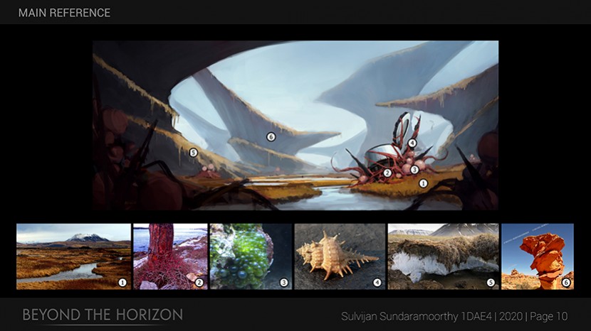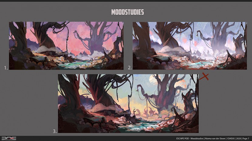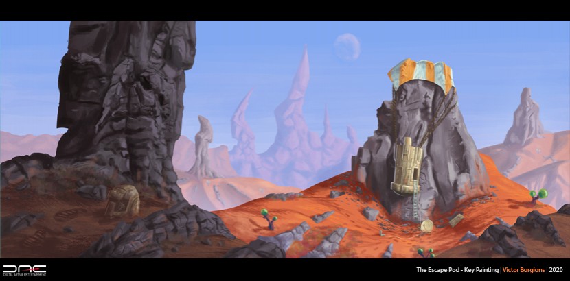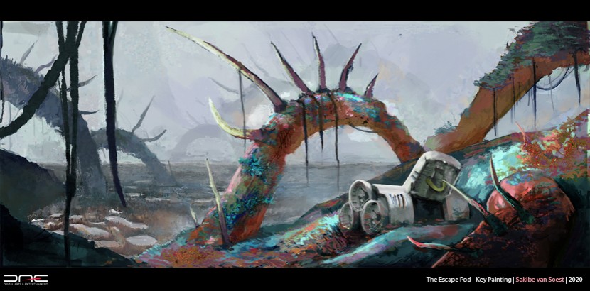 For their end-term project our first-year Game Graphics and 3D Animation students had to visualize the moment a protagonist crashed on an alien planet. The planet has the same physcial laws as planet earth but has slightly different geography and flora.