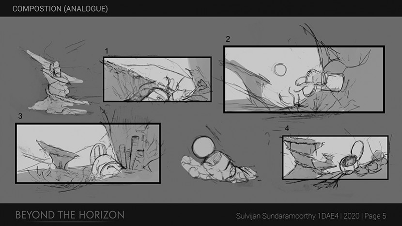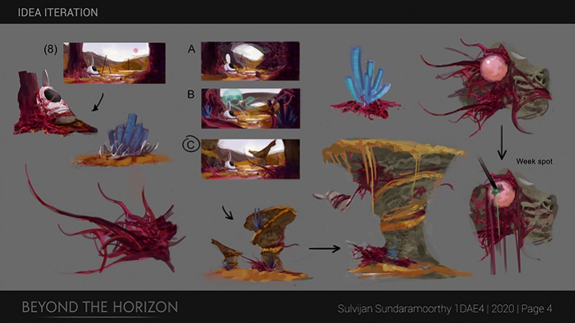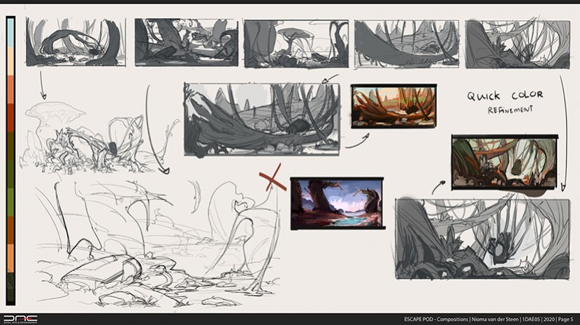 Each student worked out a production sheet consisting of ideations, compositions, mood studies, a final key painting and reference sheet.