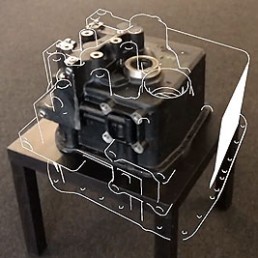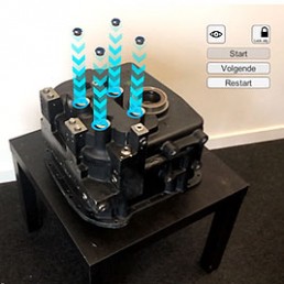 Model based tracking is a principle that uses augmented reality to project 3D objects on a physical object without the use of QR codes or trackers, but by using the outline of a CAD model as a reference for image recognition. Advantage of this workflow is that a environment or physical object does not need to be adjusted in any way to project the AR, and you can show digital information as an extra layer with great precision. Out prototype (made within the sivar project) shows the potential of model based tracking as a tool for virtual training on real objects: we visually guide a user step by step to showcase assembly steps.