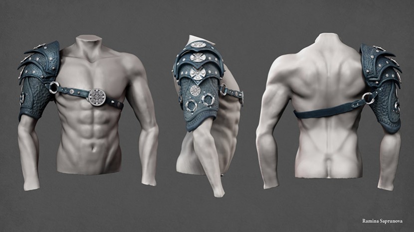 Our students have their share of anatomy sculpting classes and got to know the full asset creation pipeline for the first time. Creating a piece of armor that fit a well done torso was the perfect exercise to practice these skills.