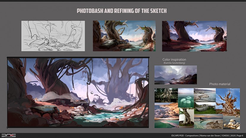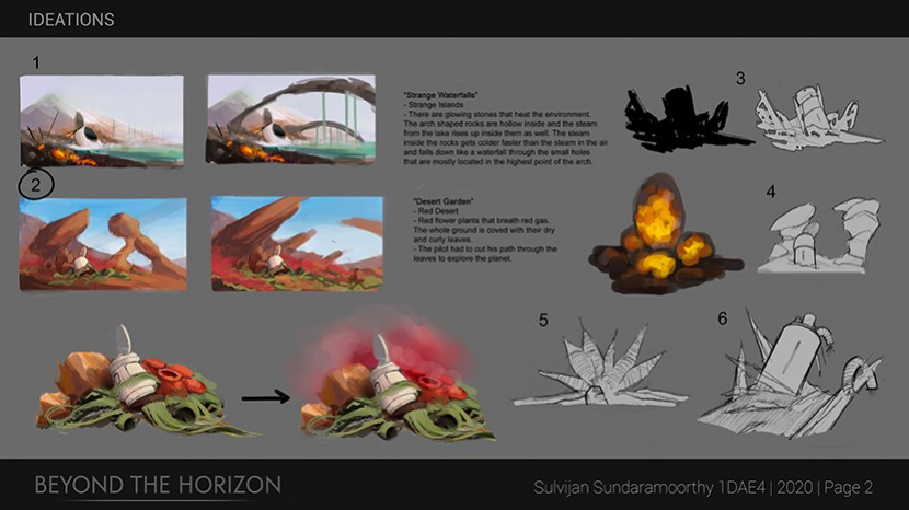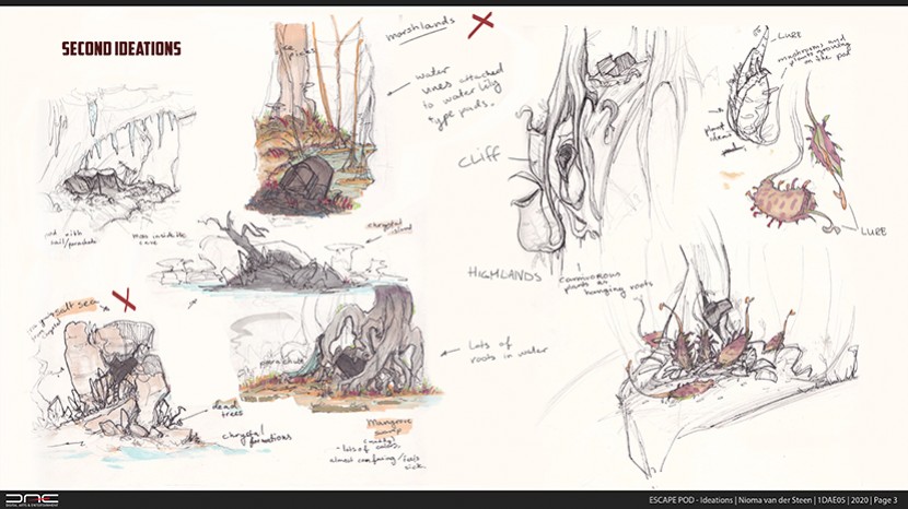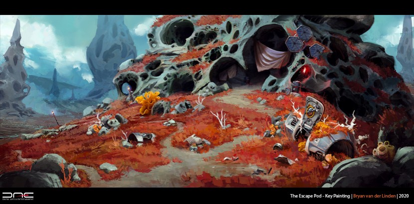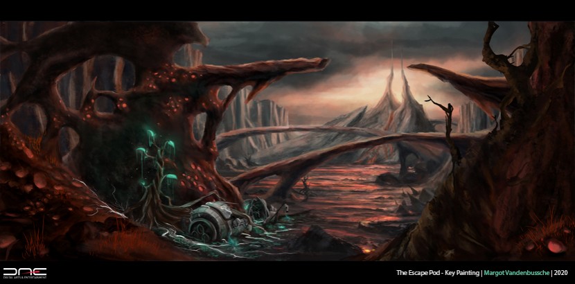 For their end-term project our first-year Game Graphics and 3D Animation students had to visualize the moment a protagonist crashed on an alien planet. The planet has the same physcial laws as planet earth but has slightly different geography and flora.